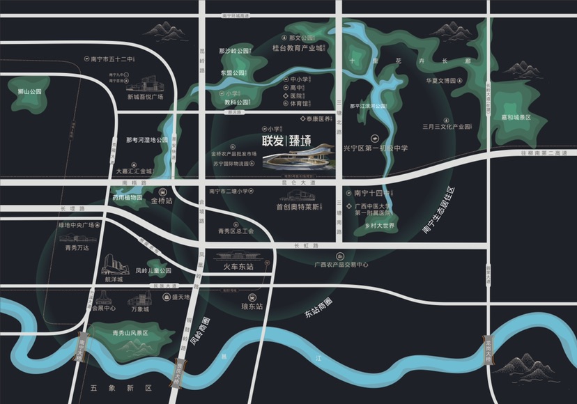 【周边公园】8大湿地公园环绕:那考河湿地公园、5大**4A级景点(那考河湿地公园、东盟公园、药用植物园、凤岭儿童公园、市政公园、那平江滨公园、科教公园、那沙岭公园、那文公园、十里花卉长廊)