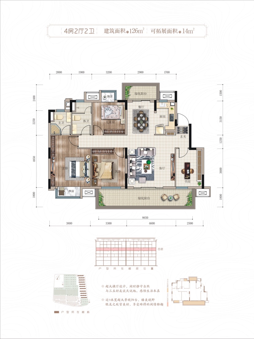 洋房(面积:约126平):8200起(仅剩一套4楼)